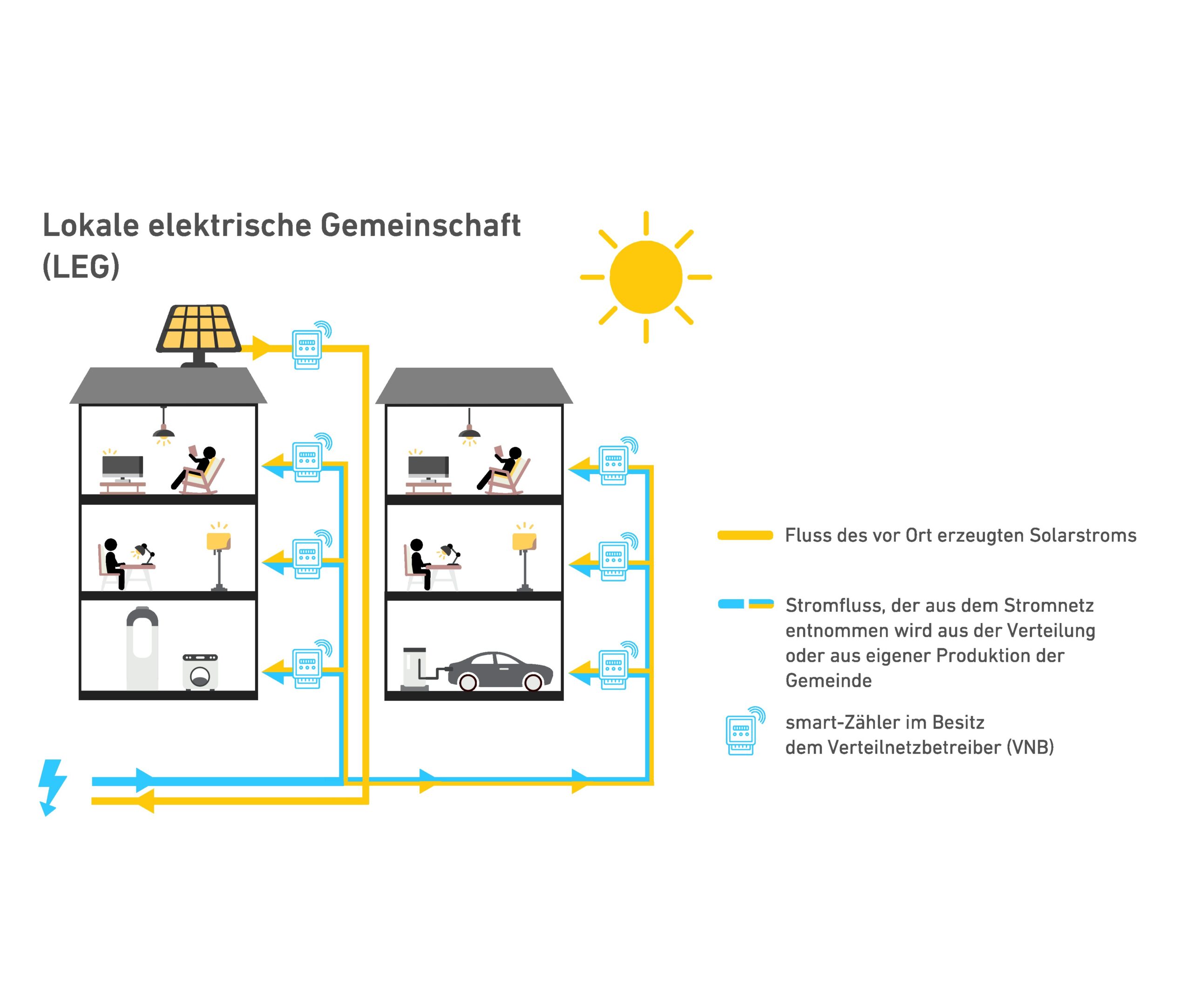 Der ursprünglich geografisch begrenzte Geltungsbereich dieser Energieverteilung wurde kürzlich mit Inkrafttreten des zweiten Pakets der Verordnung zum Stromgesetz erweitert, das seit dem 1. Januar 2026 die Gründung lokaler Elektrizitätsgemeinschaft (LEG) ermöglicht.